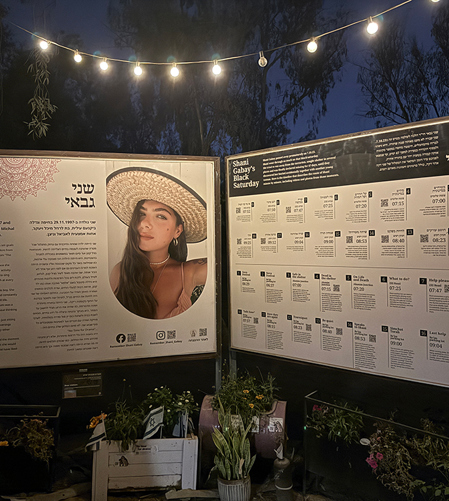 במקום פגשו המשתתפות והמשתתפים את אביו של בן שמעוני, שנרצח באותו יום לאחר שחזר שלוש פעמים תחת אש כבדה לחלץ אנשים ממסיבת הנובה. אביו של בן מגיע מדי יום לאתר כדי לספר את סיפורו של בנו.