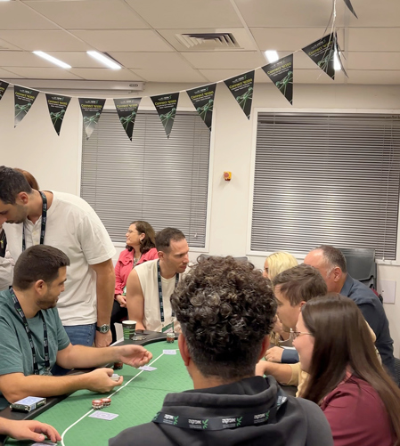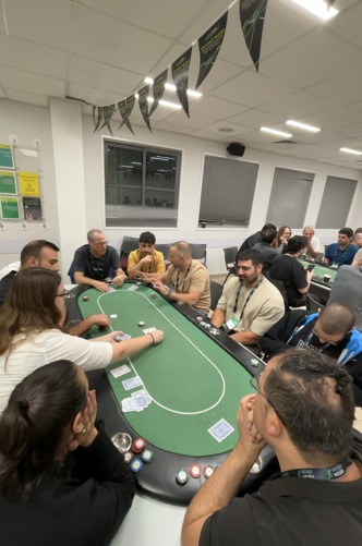 בסיום החלק התיאורטי, התחלקו המשתתפים והמשתתפות לשולחנות פוקר, שם התנסו במשחק בהנחיית מתרגלים מקצועיים. לאחר כל יד קיבלו השחקנים פידבק קבוצתי, שאִפשר להם להבין לעומק את ההחלטות שעשו וליישם באופן מיידי את העקרונות שנלמדו בהרצאה.