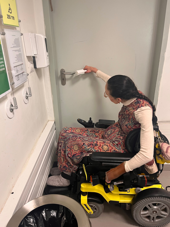 "זה מחסום הנגישות הראשון שיש לי כשאני יוצאת מהבניין- לפתוח את הדלת החוצה. וזה מלווה במרחב הציבורי.