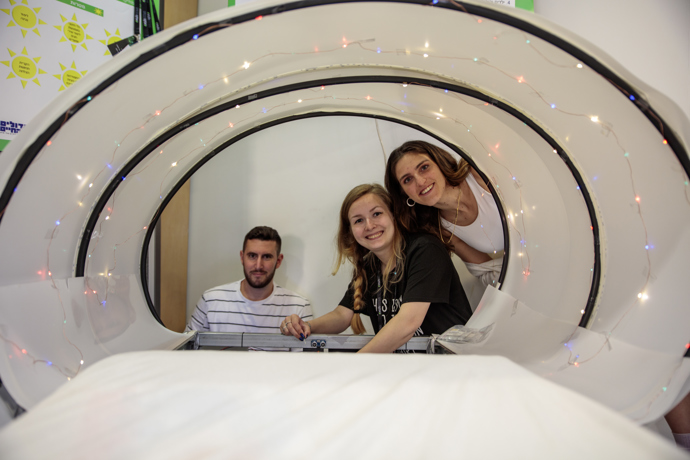 1. סימולטור MRI(מכונת MRI לילדים)- במבט ראשון המכונה דומה למכונת MRI סטנדרטית אך בגודל פחות מאיים מגודלה של מכונה אמיתית, כמו כן מבחוץ ניתן לראות מה קורה בתוך המכונה. המכונה נמצאת בשליטתו של הילד אשר בוחר את צבע האורות הפנימיים, המוזיקה המתנגנת בתוך המכונה ואף עד כמה המיטה נכנסת.