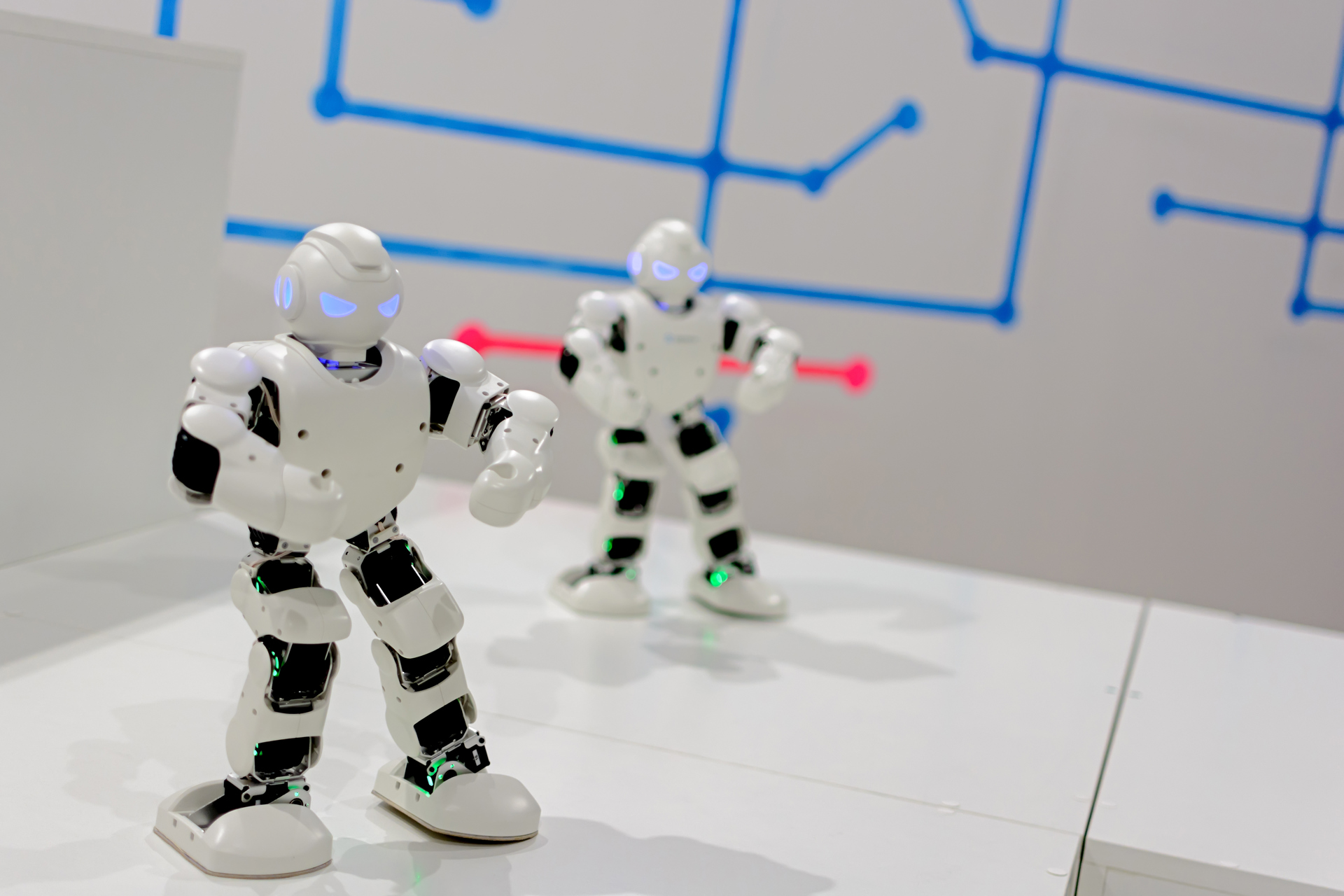 זוג רובוטים הרוקדים בהתאם למוזיקה המושמעת