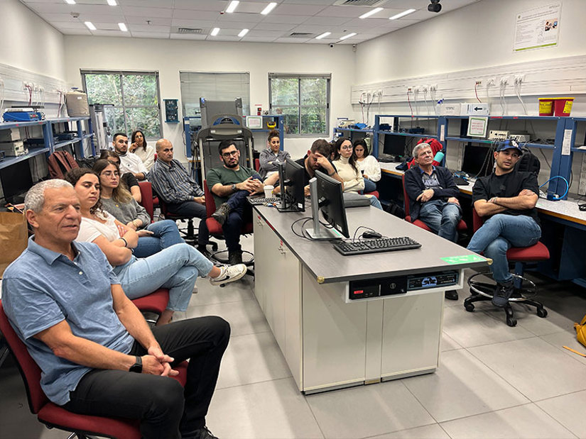 מעבדת מכללת אפקה התמלאה בסטודנטים וסטודנטיות מקורס "נושאים נבחרים בביומכניקה" בתואר שני בהנדסה רפואית, שבאו להקשיב לסיפור הצלחה מעורר השראה.