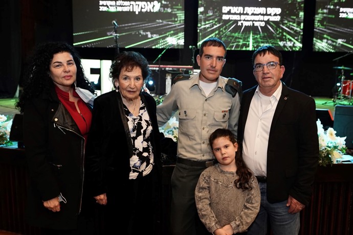 בתמונה 2: נציגי 4 דורות מבני משפחתו של סא"ל לירון אלזון הגיעו לחגוג עימו את קבלת "אות הבוגר", סבתו, הוריו וביתו. "טפחו את המשפחה האורגנית שלכם – המשפחה שליוותה אתכם במסע אל התואר היא באמת הדבר הכי חשוב גם בהמשך" ציין לירון בדבריו.