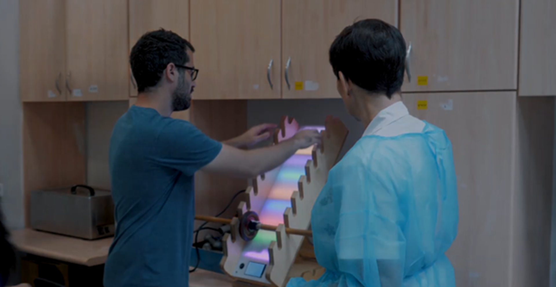In collaboration with the Engineers Without Borders student group at Afeka, they took an upper limb physiotherapy training device used in occupational therapy treatments and transformed it into an engaging, enjoyable rehabilitative experience for patients at Loewenstein Hospital. The students integrated the classic memory game "Simon" into the device, making the exercises more interactive and fun.