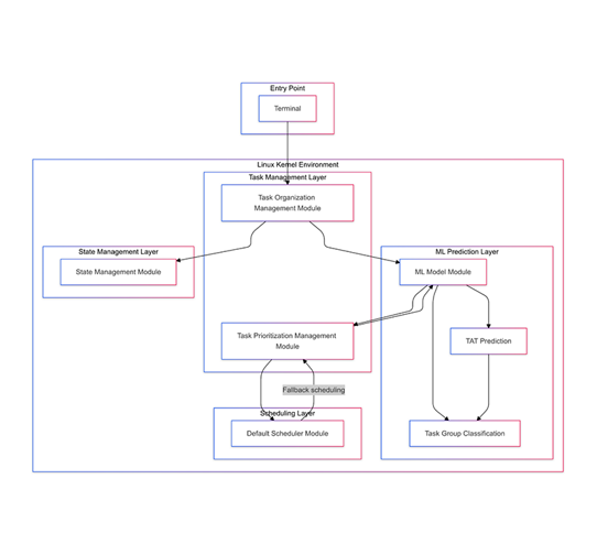 הפרויקט עוסק בפיתוח מתזמן חכם למערכת הפעלה מבוסס Linux, המשתמש באלגוריתמי למידת מכונה כדי לשפר את תהליך תזמון התהליכים (Process Scheduling). המטרה: לצמצם זמני המתנה של תהליכים, לייעל את ביצועי המערכת ולהתמודד טוב יותר עם עומסים משתנים – באמצעות חיזוי ודירוג חכם של תהליכים.